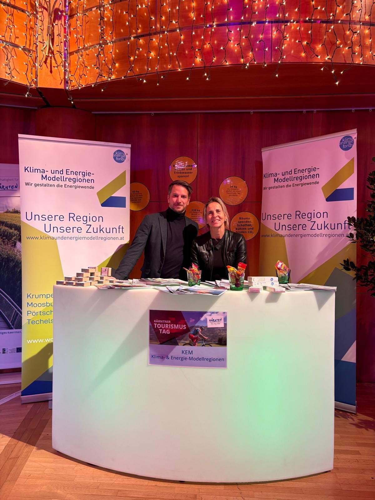 Beim diesjährigen Kärntner Tourismustag war die Klima- und Energie-Modellregion (KEM) als Teil der vielfältigen Aussteller vertreten und bot interessierten Besucherinnen und Besuchern Informationen zu Klimaschutzmaßnahmen und Unterstützungsangeboten für Betriebe und Gemeinden.